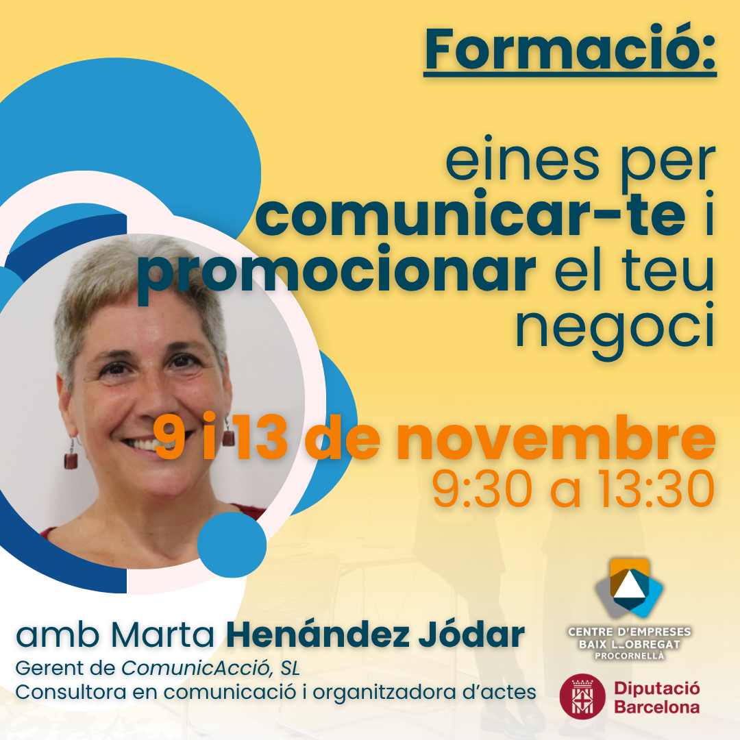 Impartit per: Marta Hernández Jódar, Llicenciada en Ciències de la Informació (Secció Periodisme), consultora en comunicació, i organitzadora d’actes i esdeveniments. Des de 2007, és gerent de l’empresa ComunicAcció, SL