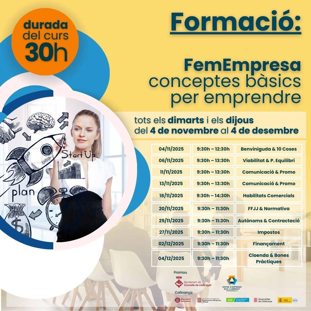 LLOC: La formació es realitzarà al Centre d’Empreses PROCORNELLÀ